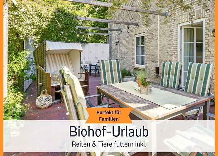 Wenn Sie einen frühen Flug aus Fehmarn haben, liegt die 2-Zimmer-Ferienwohnung Bio Ferienhof Wichtelweide - Fewo Calendula 100 km vom Flughafen Lübeck entfernt. Dieses 120 m^2 große Apartment bietet eine Terrasse mit Blick auf den Garten.